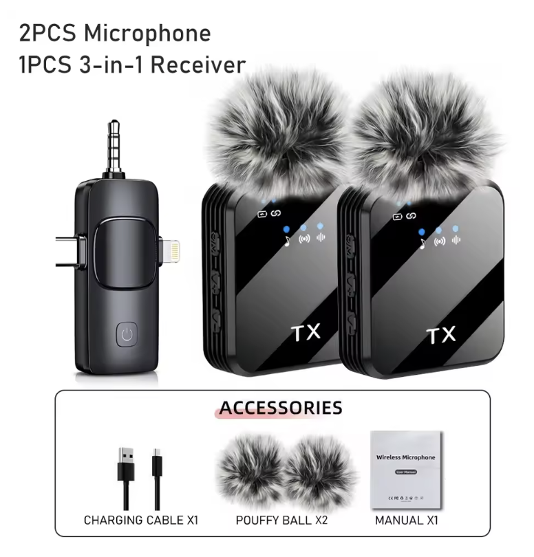3in1 Wireless Lavalier Microphone for Camera,iPhone,Android