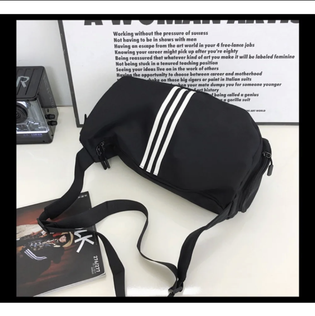 Stay ready for the gym, travel, or daily hustle with this sleek, all-black 3-stripe gym bag. Designed for both men and women, it combines style, comfort, and functionality in one.